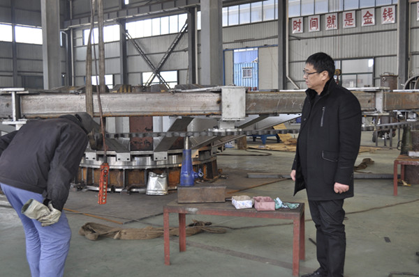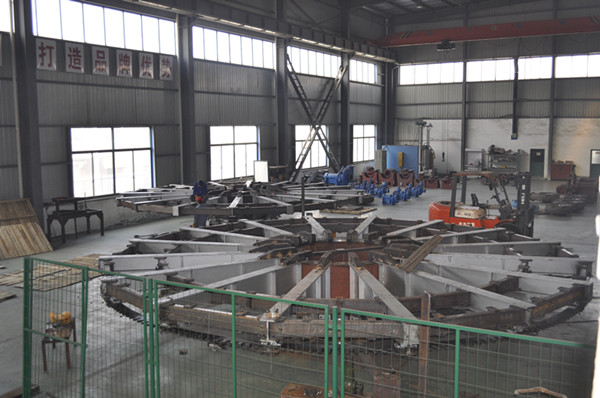 近期,我公司为池州冠华黄金有限公司制作的定量式圆盘浇铸机正在厂内试组装,该设备将自动化控制技术和机械制造技术完美结合,能够实现定时定量精准浇铸。这种新型的圆盘浇铸机能够克服老式圆盘浇铸机制品厚薄不均,重量不齐,泼洒严重,劳动强度大,能耗大的缺陷。图为我公司工作人员正在拼装定量式圆盘浇铸机。