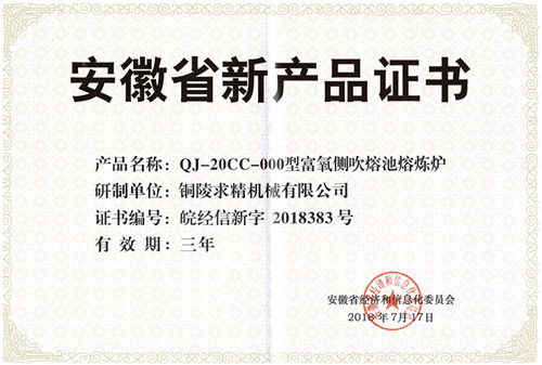 近期,我公司两项新产品获安徽省新产品荣誉称号。这两项新产品分别是富氧侧吹熔池熔炼炉和定量式圆盘浇铸机。上述两项新产品均由我公司自主研发,填补省内同类产品生产空白,产品自上市以来,技术先进、性能稳定,深受用户好评,取得了良好的经济和社会效益。