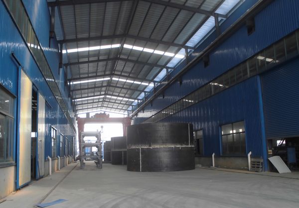 为扩大产能,提高土地资源利用率,我公司投资200万兴建的大件组装厂房。经过4个月施工建设,该厂房近期竣工投产。厂房使用面积约2000平方米,安装了65吨龙门吊车,为我公司制造拼装大型设备及结构件创造了有利的条件。图为新厂房现场。