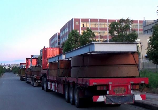 近期,公司完成新疆鑫慧铜业一批转炉项目厂内加工任务,经过一系列的出厂检验和试安装程序之后,目前,这批货物已经具备发货条件。应业主要求,公司立即组织物流公司往新疆发货,图为公司发运设备现场情景。